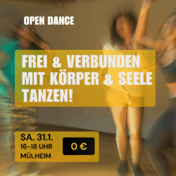 BerührtSEIN im BaumCampus Benk Weseler Str. 52, Mülheim an der Ruhr, GermanyOpen Dance ist ein weiter, offener Raum zum SPIELEN mit Tanz und Bewegung. Wir tauchen gemeinsam ein in die vielfältigen Landschaften des freien Tanzes. Wir sind eingeladen, uns zu öffnen für all das, was sich in diesem Moment in uns und zwischen uns zeigt und ausdrücken möchte Wie sieht das genau aus? Wir tanzen allein, […]