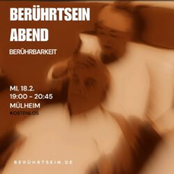 BerührtSEIN im BaumCampus Benk Weseler Str. 52, Mülheim an der Ruhr, GermanyEin Abend mit NÄHRENDEN BEGEGNUNGEN! Erlebe Verbundenheit mit anderen, Begegnungen mit Tiefe und achtsamer Berührung, werde leicht und lebendig. Ablauf des Abends Wir beginnen im Kreis. Es ist Raum zum Ankommen. Wir nehmen uns und die anderen in unserer momentanen Befindlichkeit wahr. Dann gehen wir mit einem Partner in eine stille Mediation. Wir lenken unsere […]
